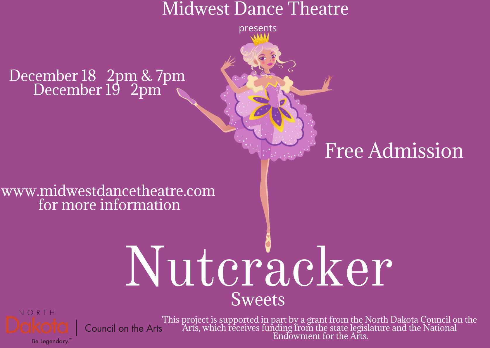 Midwest Dance Theatre presents The Nutcracker! This traditional holiday ballet favorite is family-friendly and perfect for all ages! Join Clara as she journeys to the forest of dancing snowflakes and the Land of Sweets, home of the Sugar Plum Fairy. Stay after the performance to meet all of the magical characters!